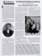 Extendiendo aún más su interesante afición y como buen amante de los libros que es desde joven, conserva valiosos ejemplares manuscritos de repartimientos realizados desde el año 1848, unos volúmenes que él se encarga de actualizar día a día, con su experiencia y con sus notas marginales en las que, por ejemplo, queda constancia de los cambios en las propiedades, divisiones, etc. Sin proponérselo, Vicente Román va dotando a la población de una inestimable fuente de datos, una tabla de equivalencias de las que se servirían después tantos vecinos e incluso entidades como la misma Hermandad de Labradores, u otras instituciones públicas. En sus buenos años se le consideraba todo un prodigio en la conversión de equivalencias, algo parecido a lo que ahora tanto nos ha costado con el cambio de pesetas a euros; eso sí, con la diferencia de que por aquel entonces no había calculadoras. A las manos de Vicente Román vienen a parar la gran mayoría de los problemas que surgían con las herencias en asuntos de tierras rústicas. Sus dictámenes son asumidos por todos como si fueran leyes, sus repartos le afaman aún más. Para algunos, como para el bufete de D. José María Funes, es una base de datos impagable. |