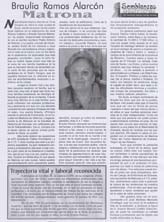 Trayectoria vital y laboral reconocida A principio de los años 80, la Cadena COPE, en su programa "Protagonistas" con Luis del Olmo, seleccionó las trayectorias profesionales más ejemplares en diferentes trabajos, teniendo la satisfacción de ser la elegida a nivel nacional como matrona. Pero no ha sido ese el único homenaje recibido. "Tuve el honor de recibir uno en Granada, en el que se me reconocía mi labor profesional y la lucha por el reconocimiento del trabajo de las matronas en la sociedad. Fue reconocida por la Delegación de Salud y por todos los colegios del ámbito sanitario, entregándoseme como galardón la estatua de Miró "La Maternidad". "En el año 1982 fui galardonada con el nombramiento de 'Bastetana Ausente', que me llenó de orgullo y me reconcilió con mi tierra. Cómo es posible que se haya suprimido ese bonito galardón, cuando somos miles los bastetanos que estando por circunstancias ajenas fuera de la tierra, la amamos, tanto o más que los que siguen en ella", lamenta Braulia Ramos |