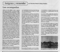 Habia que estar afiliado a todo si querías tener alguna actividad. Lo primero a la Iglesia, anotándome como monaguillo D.Felípe Mérida, en la Parroquia de San Juan. Luego lo seria de D.Andrés Cabrerizo. Pasé por la casa de la Falange que se había inaugurado en el Arco de la Magdalena (antes estuvo en la Casa de D. Rodrigo, junto a San Juan) e insistí en que fuera afiliado a la centuria “Ramón Almela” en la que estaban todos mis amigos de la Cava-Alta. Hablé con el Sr. Machuca, para que me apuntara a las rondallas, y llegó mi primera decepción: como no era trabajador, sino que era estudiante no podía apuntarme. Ni valió la recomendación de un amigo que era hijo de carpintero (Mirillas ) y que me acompañaba en ese momento. Luego pasé por la Sacristía de la Iglesia Mayor, donde estaba Gonzalo García Muñoz, que me anotó en la Adoración Nocturna, aunque hube de esperar unos años para que me llamaran, pues aún era muy pequeño para pasar la noche en vela y, finalmente, me pasé por el Colegio que tenían los Franciscanos, para apuntarme a sus obras de teatro como actor. Qué buenos recuerdos nos dejaron tanto el Padre Demetrio como luego el Padre Pedro. Tenía las puertas abiertas en lo que podía hacer en los ratos libres que nos dejaba el estudio en la “Academia”, aparte de tener más amigos. Pues los sábados y los domingos eran fatales y no me agradaba tener siempre los libros y deberes. Aparte de poder jugar al billar, al ping-pong, ajedrez y damas, que nos facilitaba el hogar del Frente de Juventudes, teníamos a mano, unos suculentos bocadillos (un bollo lleno de atún ,de sardinas o de anchoas ) a un módico precio, en su cantina. De donde primero me llamaron fue el Colegio de los Franciscanos, para ensayar una pequeña obra. Se llamaba “Capitanes en Flandes”. Fuimos admitidos dos: Paco Ibáñez, hijo de María la de la Plaza, que vivía en Calle del Chorrillo, y yo, que vivía en Cava-Alta. Los dos éramos compañeros de curso en “La Academia”. El director-apuntador de la obra era un chico larguirucho de Granada. Nuestra madera de actores, la demostramos en los ensayos. Pero llegado el día del estreno, en una escena en la que actuaba como Capitán, debía de decir al final de la misma: “Cafarell, prepara lo necesario y trae mi espada, pues raudos hemos de marchar a Flandes, para ayudar a nuestros tercios y dejar en alto las enseñas de nuestra amada patria”. (Cafarell era el nombre de mi ayudante, y lo representaba Paco). Como éramos amigos, dije “ Paco trae mi espada que nos vamos a Flandes lo antes posible”. Paco me trajo la espada e hicimos mutis por el foro. El público -siempre justo- nos aplaudía fuertemente, cuando el apuntador, que debía de ser un granaíno malafollá, nos llamó a Paco y a mí y nos dijo que no volviéramos a pedirle jamás ningún papel. Aún oíamos los aplausos del público y nos habían puesto de patitas en la calle. Injusticias de la vida. Paco se hizo Practicante, marchó a Cataluña (Cerdanyola) y, de cuando en cuando, viene a las fiestas y lo vemos marcándose unos pasodobles con su querida esposa, Lola. Aún son jóvenes. Yó quedé en esta y seguí otros derroteros. Pero lo que sí es cierto es que el teatro perdió dos buenos actores. Sobre el mes de mayo, se empezó a hablar de los campamentos de verano y a hacer las primeras acampadas en la sierra. Consistían en un día de marcha y una noche en tiendas de campaña. |
