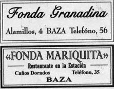 | Pero había otras. La "Posada del Centenario”, de Alfonso Martínez, donde se alojaba a los procedentes de la parte de Cúllar-Baza, la "Posada de Levante”, de Cecilio Maestra, que tenia las líneas regulares de viajeros en diligencia de Baza a Caniles y de Baza a Cortes y Cúllar-Baza. La "Posada de Lorca”, de Antonio Lledó, para los que venían acompañando a enfermos al Hospital de Santiago. La posada "El Rincón” ,de Eusebio Martínez, y la posada “del Sol “ de Fernando Cervantes, recibían a los foráneos que se acercaban a nuestra ciudad por motivos de visitas médicas, jurídicas o de comercio general. Todas estas empresas llegaron al año 1945. | |||||