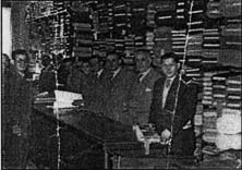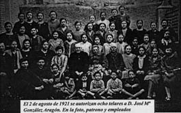 Como punto de venta principal, esta fábrica disponía de una tienda “CASA GONZÁLEZ” dedicando a la venta de sus tejidos a ocho dependientes fijos, lo cual nos da una idea del volumen de negocio y venta de esta industria, y a la variedad de su producción. En la foto de los dependientes de la tienda, hecha en el año 1955, podemos distinguir a Antonio González, Rafael Carmona, Antonio Muñoz, José Sánchez Mirón, Francisco Mateos, Lorenzo González, Paco Torres y Francisco González. |