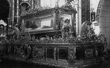 Igualmente confecciona, por encargo del Ayuntamiento de la ciudad, el Trono de la Archicofradía del Santo Entierro, magnifica obra de talla en madera, que se muestra el Viernes Santo, y se conserva en la Iglesia de la Merced. Sus bajorrelieves, con la historia de la Pasión de Cristo, son obras de arte en talla. Posteriormente recibe varias medallas y diplomas, en distintas exposiciones y, más que todo, inculca en sus hijos y empleados el amor al arte, a la belleza, al trabajo bien hecho y, sobre todo, a la humildad y sencillez en la vida cotidiana. Nos legó a todos los bastetanos todo un ejemplo de hombría de bien, llevando el nombre de nuestra ciudad, allá donde se encuentre una obra salida de su taller. Falleció, repentinamente, el día 18 de Marzo de 1984. |