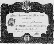 | Una de las finas tallas de este insigne bastetano que, en 1946, en la I Feria General de Muestras obtuvo estas medallas y el diploma acreditativo, a la derecha. | |||||
