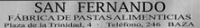 La fábrica de PASTAS ALIMENTICIAS “SAN FERNANDO” fue creada por la familia Domínguez (D. Jesús y D. Hilario) por los años 1926, en el edificio del antiguo Pósito, en la Plaza de la Trinidad número 4 (Plaza de la Cascada).