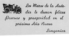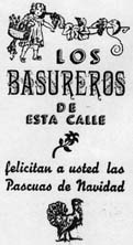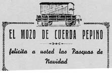 | Así nos felicitaba el Cartero, el Mozo de la Autedia que le decían Longaniza, el Mozo de cuerda que bajaba los bultos de la estación de ferrocarril que era conocido como Pepino y, cómo no, los sufridos basureros de nuestra calle, que casi siempre lo hacían con una tarjeta, en la que nos pasaban su felicitación en verso, y que año tras año, era siempre el mismo. | |||||