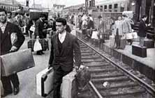 Son varios los motivos que llevan a la emigración a nuestros paisanos en aquellos años. Principalmente, los políticos: decenas de familias han perdido a alguno de sus miembros en el bando perdedor y la vinculación con esta ideología les obliga a marcharse. Se prefieren países como Portugal, México, Francia, Argelia y Cuba. En algunos casos, se trata incluso de familias completas, con más o menos implicación política. En la mayoría de los casos, las familias ven marchar a uno o más de sus hijos, también por los mismos motivos, quedando en la zozobra de no saber a dónde han ido a parar, hasta no tener carta de los mismos. En este caso, muchos recalan en Francia, unos pocos en Italia e incluso al Marruecos francés. Los que quedaron en Francia, como componentes del ejército derrotado, son los que sufren la peor de las suertes: campos de internamiento, engaños de los políticos comunistas para que retomaran la lucha en territorio patrio,” a la que se les uniría el pueblo”, decepción y persecución y acoso por las fuerzas franquistas, aquí y en territorio francés, otras persecuciones y entregas al ejercito alemán, por el régimen títere de Vichy. Para colmo de males, en años sucesivos se instala en nuestra ciudad la hambruna; no hay suficiente producciones aquí para alimentar a sus vecinos o están en algunas manos privadas. Sin embargo, en otras regiones de la misma España sí se encuentra trabajo, y comida. Por este motivo esencial se inicia una tímida emigración a Levante y Baleares, Madrid, Barcelona y Bilbao. |