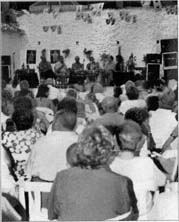 | Los mayores del barrio, que por suerte son muchos, recuerdan que era costumbre, en las verbenas de verano, que cada familia aportase, aparte de las sillas que precisaban sus propios integrantes para hacer de espectadores, lo que se llamaba “cesta de envite” en la que se incluían roscos, dulces, tortas o bizcochos y variadas botellas de “anises” que luego se repartían entre todos los asistentes. En aquellas largas noches de diversión y encuentro se recitaban coplas picantes y satíricas sobre los sucesos más comentados ocurridos en el barrio, exposiciones que recibían el aplauso unánime de los congregados. |
