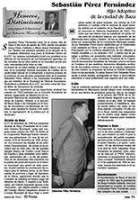 El Ayuntamiento de Baza, el dos de octubre de 1992, bajo la presidencia de Diego Hurtado Gallardo, tomó por unanimidad el acuerdo de nombrar a Sebastián Pérez Fernández como Hijo Adoptivo de esta ciudad. |