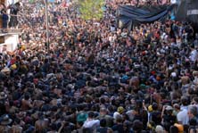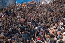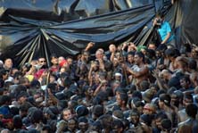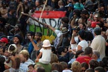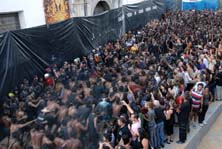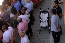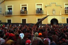 | El apretujamiento ahora va a más. Se diría que casi se crea el milagro de un apretujamiento infinito y, por donde nadie más cabe... llega el Cascamorras. |