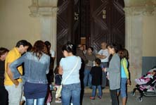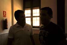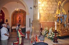 La cita es en la Iglesia de San Miguel, donde el cohetero avisará a los accitanos y hasta donde llega el Cascamorras 2011, Antonio José Vera López, quien ya conoce al detalle la misión, pues hizo tres intentos previos al de este año, en 2002, 2004 y 2005. Allí se encuentra con otros Cascamorras que le saludan y le animan: Jesús Samaniego, Rafael vallecillos, Álex Baena... No está José Antonio Escudero, el Cascamorras 2010, que debía haber repetido este año y a quien una tan imprevista como necesaria operación de apendicitis le tiene aún con su herida abierta. |