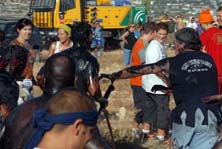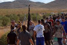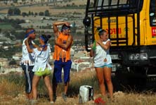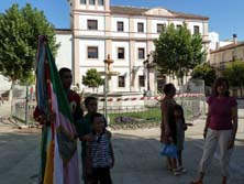 | Y aún quedan los que dicen que vienen "a pintar", Alcalde incluido, los que tratan de encontrar algo más de pintura... y los que llegan acompañando la enseña de la Hermandad accitana que han subido hasta arriba, a esperarlos, alargando el difícil recorrido unos cientos de metros más que en otras ocasiones. |