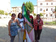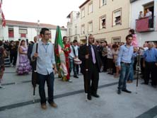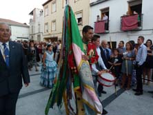Y así se llega hasta el puente donde finalmente hay un par de centenares de personas que se unen a los recién llegados y que observan como Juan López, el hermano Mayor, toma para sí la bandera y se dispone a entregarla al Cascamorras. |