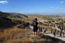 También los sigue habiendo que se empeñan a dejar su huella... o lo que sea, a lo largo del recorrido, en una actitud que bien merecería la pena repensarla y llevar a plantearse un Cascamorras que no acabe en la ciudad plastificada. |