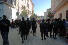| La sorpresiva invasión casi deja desiertas las aceras. De pronto, aparecen los huecos donde había gente y parece que los espectadores son los que faltan en esta algarabía. |