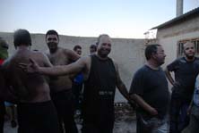 | La última verja lleva a Cascamorras a la ducha reparadora, en un pequeño cobertizo al que entra acompañado por alguien de su círculo más íntimo, para resarcirse de pintura y apretujones y para ver como, en apenas unos instantes, su cuerpo vuelve a estar limpio y sin señal alguna de cuanto acaba de acontecer |