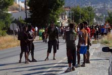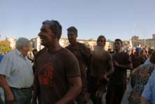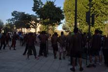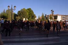 | Y, a pesar de que la carrera se ha vuelto ahora más lenta, no es motivo de disgusto para los que van por delante, así que hasta los hay que empiezan a pedir reparador descanso, optando por aquello de que cualquier sitio es bueno, cuando ya la calle está tomada y, eso sí, sin perder la vista a lo que se puede venir encima, por lo que apenas son unos instantes de reposo. |