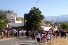 | Cuando el grupo llega a la avenida Medina Olmos, camino del puente sobre el río, ya se deja ver que no hay marcha atrás, que serán muchos los miles de bastetanos que lo aguardan, pero que se va a intentar. Y a fe que parecen convencidos. Se diría que hasta lo están. |
