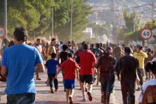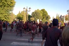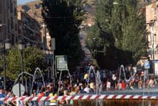 | Los vítores y cánticos se siguen sucediendo mientras la carrera se acerca ya a la zona de la Plaza de los Toros y empieza a dejar notar que no iba tan rápida como parecía. |