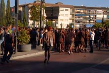 | La comitiva de Cascamorras recorre la inmensa avenida que le lleva hasta el puente, mientras los accitanos aprovechan que, por primera vez, la ciudad disfruta también de fiesta en el calendario, para echarse a la calle y vivir la Fiesta. |