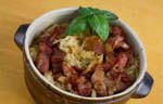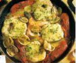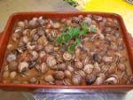 Se ponen en una cazuela de barro unas rodajas de merluza, un poco de aceite, sal, unos ajos picados, un poco de perejil picado, unas cuantas almejas y unas gambas. Se tapa y se deja cocer a fuego lento durante unos minutos hasta que las almejas se abran y quede todo en el aceite. Se le puede añadir una guindilla. Se puede hacer el mismo plato solamente con gambas peladas. |
