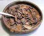 Se corta la sangre ( pollo o pavo) en taquitos, se fríe, se escurre bien de aceite y se reserva. En una sartén se fríe bastante cebolla muy picada y cuando está frita se le añade un vasito de vino, otro de agua, sal y pimienta molida, se deja hervir unos minutos, se le añade la sangre y se deja cocer hasta que quede en la salsa. También se puede hacer igual que la morcilla con tomate, sustituyendo la morcilla frita por la sangre frita. |