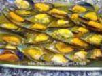 Se ponen los mejillones en una perola, se les parte un limón, se añade sal y pimienta entera, se tapan y se dejan a fuego lento hasta que se abren. Se les quita una de las conchas y se sirven en una fuente. |