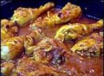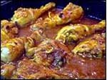 Se limpia el pollo, se parte a trozos y se pone en una cazuela. Se añade sal, un chorreón de aceite frito, dos o tres dientes de ajo machacados, un buen manojo de perejil muy picado, un poco de pimienta molida, azafrán, un poco de canela molida y una cucharada colmada de harina. Se marea todo, se cubre de agua y se deja cocer hasta que la carne esté tierna, moviendo con frecuencia para que no se pegue. |