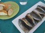 En una sartén se fríe una cebolla muy picada, unos dientes de ajo picados y un tomate rojo picado. Cuando está frito se le añade una cucharada de pimentón y otra de harina, se le echa el pescado limpio y troceado (bonito, estorninos...), se marea todo bien y se pone en una perola con un poco de pimienta molida, sal, azafrán, unos pimientos asados y un poco de agua y se deja cocer hasta que quede en la salsa. Hay que mover con cuidado para que no se pegue y no se rompa el pescado. |