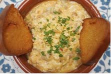 Se desmiga el bacalao previamente desalado y se le añaden ajos picados, perejil picado, un poco de pimienta molida, colorante y dos huevos; se mezcla bien con una cuchara, se le añade un vasito de agua y un poco de harina mezclada con una cucharadita pequeña de levadura Royal y se hace una masa tierna, pero que se pueda freír. Se fríe en aceite abundante y cuando se sacan se dejan escurrir sobre un plato cubierto con papel de cocina. Este plato también se puede hacer sustituyendo el bacalao por habichuelas verdes cocidas o coliflor cocida. |