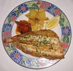 Se fríen tres o cuatro dientes de ajo laminados y un picadillo de jamón tocinoso y se reservan. Se limpian las truchas, se les echa un poco de sal, se enharinan y se fríen en el aceite de freír lo anterior. Se pone una trucha en cada plato y se cubre con lo frito anteriormente y un poco del aceite de freír. A las truchas se le pone poca sal porque el jamón puede salarlas. |