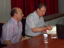 Una idea está que Gallego reforzó con opiniones de Aristóteles (Todo el mundo sabe que los viejos son doblemente niños), antes de avisar de que la obra trata de lugares, personas y familias que pueden ser fácilmente reconocibles, pero que se alejan de la realidad al amparo de formar parte de una "novela", así que los parecidos de hechos y personajes acabarán teniendo que ser considerados como puras coincidencias de la realidad en que vivimos y en la que es esa realidad la que se mezcla con la ficción, para darle vida a la obra. Manuel Gallego habló también del hilo conductor de "Yeyo", el cual resumió centrándolo en un sólo sentimiento: el amor. Eso sí, un amor que se ve acompañado del paisaje, los personajes y los lugares donde transcurre su nueva obra y que forman un triángulo entre Baza, Fiñana y Almería, fundamentalmente, para acercarnos a la vez a la vida cotidiana de estas localizaciones, y de toda una época, lo que nos lleva a una intrahistoria de esta zona de España y Andalucía en unos momentos tan interesantes como los de mediados del siglo XX. En "Yeyo" aparecen personajes que marcan el carácter de ese tiempo pasado y que acaban marcando toda una forma de vida en la que el maestro o el médico tenían una imagen tan distinta a la de hoy, como distinta era la de niños y jóvenes, la de relaciones y amistades, la de juegos y diversiones,... en definitiva, la vida de entonces marcada por una posguerra y una situación económico-social, que cobra vida de nuevo en esta novela haciéndose evidente en las páginas de esta obra. Obra esta que nos trae una historia en la que Yeyo marca la infancia del protagonista, mientras este nos va contando toda una serie de relatos, que permiten lecturas independientes y que parecen tener vida propia, pero que acaban confluyendo llevando al personaje a una madurez en la que nunca cayó en el olvido la joven que da nombre al relato y que aún tendrá algo que aportar a la historia. Digamos, finalmente, que esta nueva obra de Manuel Gallego es anterior a la última conocida. Asuntos relacionados con la problemática del mundo editorial hicieron que "Álvaro Simöes" apareciera en las librerías con anterioridad a la aparición de "Yeyo", pero sepan nuestros lectores, y los lectores de las obras de este autor, que, en la génesis de ambas novelas, la que ayer veía la luz está escrita con anterioridad a la dedicada al portugués. |