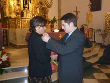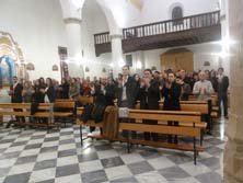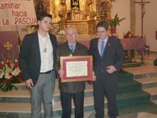 | A la tarde aún le quedaban nuevas emociones. Tras la entrega de un precioso ramo de flores, a la pregonera, y la colocación en su solapa del escudo de oro de la Cofradía, por parte del Hermano Mayor, breve y sentido homenaje a dos cofrades, para el que José Ramón Ibarra comenzó contagiando el nudo que se hizo en su garganta a muchos de los que le estaban escuchando queriendo rendir homenaje a Juan Belmonte Cano y José Grimas Martínez, por los muchos méritos acumulados en su vida cofrade, y con la aún más emotiva lectura de un texto que le dedicaba a José Grimas una de sus nietas que, por cierto, también apuntaba maneras. Habrá que seguirle el paso, porque desparpajo y soltura no le faltan, ni lectura clara y pautada con la que saber transmitir, tampoco. | |||||||||||||||||||||||||||||||||||||||||||||||||||