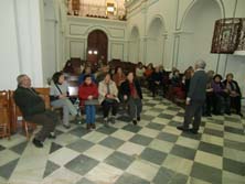 Así, por el camino hacia Oria, con una importante, presencia de pies de almendro en flor y vegetación mediterránea, de encinas, pinos y cereales, se fueron ofreciendo datos de la importancia económica para nuestra comarca de este importante fruto. Tras las reglamentarias tortas, se llegó a Oria, donde la Asociación de Alumnos tenía organizada una visita guiada a la Basílica existente en dicha localidad (segundo templo en categoría tras la Catedral de Almería). Allí, el sacerdote D. Miguel Esteban Jerez, relató las características arquitectónicas y religiosas de la misma, haciendo hincapié, en el acto de Los Dolores y las Llagas, que son Cantos en castellano del año 1870, año de su primera Celebración y que hasta la fecha se viene realizando. |