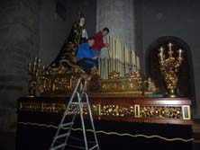 Intensa actividad cofrade en la ciudad de Baza, con todas las ilusiones puestas en que la lluvia no deje a nadie sin salir. El mundo cofrade bastetano vivía en la jornada de ayer unas horas de la más frenética actividad, con los preparativos de una Semana Santa que se inicia en el día de hoy y para la que los temores principales se centran, una vez más, en la presencia de la lluvia. Ayer sábado, la jornada permitió vivir en la ciudad bastetana unas horas matinales de primavera soleada y radiante que, a partir de media tarde, pasaron a ser horas de lluvia que, aunque no en cantidades destacadas, estuvo presente ya toda la tarde y continuaba al cierre de nuestra edición. A pesar de todo, las ilusiones siguen puestas en que la lluvia respetará nuestra Semana Santa y la tarde del sábado nos permitía ver la concentración de costaleros y costaleras en Santiago, la preparación de los tronos de la Santa Cruz, los Méndez y el Silencio en la Iglesia Mayor, la misma situación en la Iglesia de la Merced, con los tronos de la Soledad a punto de los últimos retoques y con la Agrupación Parroquial del Santo Entierro trabajando a todo ritmo. Muy cerquita pudimos asistir al quinario y Vía Crucis de la Cofradía del Nazareno, afectados por la lluviosa tarde, y, a unos pasos, el paso de La Borriquilla y Jesús de la Paz en el que se colocaba la palma de San Juan y los últimos claveles rosas. Todo a punto, todo siguiendo las previsiones y programaciones y con todo el mundo dispuesto para vivir una nueva Semana Santa, cargados de ilusiones y de ganas, de muchas ganas. Vean si no, una pequeña galería de imágenes de lo que ayer era Baza, en las que incluimos también cómo llegan grupos a visitar nuestra ciudad en la que hasta el comercio se está involucrando en esta celebración: |