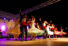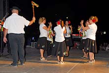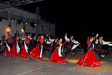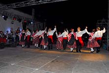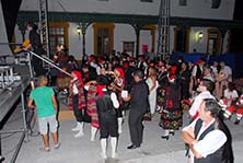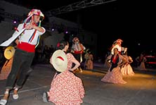 Como siempre, el grupo que dirige Diego Alonso vive el Festival bastetano con una implicación total y absoluta y con un trabajo previo sumamente intenso, a lo que unen muchos de los trabajos paralelos a las propias actuaciones que se precisan en el festival y en el que, con el objeto de abaratar costes, se han encargado incluso de las cenas para todos los actuantes, los dos días de actuaciones y, aún así, no les ha faltado la mayor energía que dedicar a su paso por el escenario y cuajar una magnífica actuación. Siguió al grupo bastetano el Grupo Folklórico “Valdemedel” de la localidad pacense de Ribera del Fresno, grupo que devolvía visita al bastetano y que causó una magnífica impresión en la primera de sus dos actuaciones, con un vestuario bonita, cuidado y portado con mucho esmero, complemento ideal para unir a las interpretaciones del conjunto de danzas que ofrecieron y que cautivaron por entero al público bastetano. |