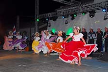 | Cerraba la primera jornada Kämuk, Grupo de Proyección Folklórica de la capital costarricense, San José, quienes mostraron la viveza y la alegría de los ritmos caribeños, en una noche en la que el frío se dejaba notar sobre Baza, contagiando de su calor a un público que se implicaba en la actuación y disfrutaba con cada uno de sus acordes y evoluciones, premiando cada interpretación con sonoras ovaciones y cerrando la primera jornada de este importante evento del verano bastetano. | |||