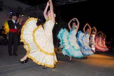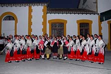 | Tras los intercambios de regalos de rigor entre las diferentes representaciones de los grupos participantes, se iniciaron las actuaciones, con la puesta en escena del repertorio preparado por el Grupo Municipal de Coros y Danzas de Baza, en el que se incluían el Fandango de Baza, la Jota de Castilléjar, el Fandango de la Iruela (Jaén), el Bolero o Fandango de Alozaina (Málaga), el Tanguillo de Valtocaos (Málaga), la Jota de la Aceituna (Villanueva de Córdoba), el Zángano de Motril y el Fandango de Comares (Málaga), obras todas ellas que sirvieron para dar una pequeña idea del excelente estado artístico en el que se encuentra el grupo bastetano y que explica el por qué de sus éxitos en las actuaciones realizadas este año. | |||