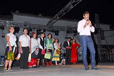 Llegado el domingo, era el alcalde de la ciudad, Pedro Fernández Peñalver, el encargado de saludar al público y a los participantes en este Festival, repartiendo halagos para quienes ya actuaron el primer día y para el excelente trabajo que está llevando a cabo el Grupo Municipal de Coros y Danzas, manifestando el orgullo que nuestro municipio siente por el excelente trabajo que lleva a cabo. |