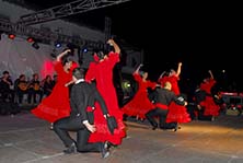 Los bastetanos abrieron también las actuaciones, interpretando en esta ocasión el Abandolao de Benamejí (Córdoba), el Vito, el Fandango de Calaña, una preciosa Rondeña Serrana (Málaga), el Fandango de Granada y terminando con unos Aires Flamencos en Turquía, que sorprendieron tanto como gustaron, volviendo a poner de manifiesto, aún más si cabe que en la primera jornada, que el duro trabajo que han llevado a cabo este verano culminaba con una excelente actuación que, probablemente, era de las mejores que se les han visto en los últimos años y en las que los diferentes estrenos han brillado a la altura del ya tan amplio repertorio con que nuestro grupo cuenta. |
