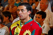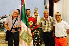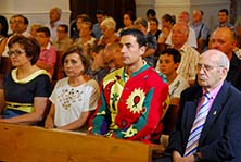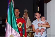El Cascamorras 2014, Antonio Vera, se enfundó su traje de gala para participar en la Misa del 15 de agosto en San Miguel. La accitana Parroquia de San Miguel se vestía de gala el pasado viernes, festividad de la Asunción, para acoger la Eucaristía en la que se presentaba, en su primer acto público, el nuevo Cascamorras 2014, Antonio José Vera López y se celebraba el acto la colocación de los lazos a la bandera de la Hermandad que portará en los diferentes actos de este año y que representan las promesas de la gente del pueblo, comisionándole oficialmente para que viaje a Baza y recupere para los accitanos la imagen de la Virgen de la Piedad. |