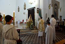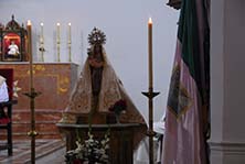 Misa solemne a la que tuvimos ocasión de asistir, bellamente armonizada por el Coro de la Hermandad de la Virgen de la Soledad accitana, dirigido por José María Casas, en la que el párroco realzó la importancia de la festividad de la Asunción, saludó al nuevo Cascamorras y resaltó la figura del presidente de la Hermandad de la Virgen de la Piedad de Guadix, Juan López Lechuga, para el que incluso reclamó honores y distinciones por la labor que lleva a cabo. A la derecha del altar mayor, una reproducción de la Virgen de la Piedad que tiene su sede en el Templo que lleva su nombre en la ciudad bastetana, detalle que rea la primera vez que veíamos y que sirvió para realzar aún más su importancia en la Fiesta de Interés Turístico Internacional que comparten las ciudades de Guadix y Baza. |