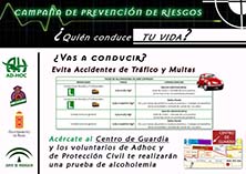 Asociación AD-HOC y Protección Civil colaboran durante la Feria en la prevención de accidentes motivados por el consumo de alcohol. Dentro de la Campaña “¿Quién conduce tu vida?” promovida por la Asociación Ad-Hoc de atención a personas con problemas de adicciones y en colaboración con Protección Civil de Baza, durante los días de feria se pone a disposición de aquellas personas que lo soliciten un recurso para que el retorno a casa se haga con el máximo de seguridad. |