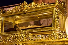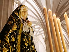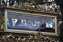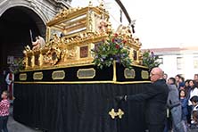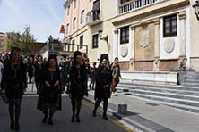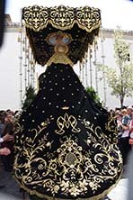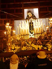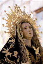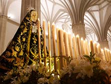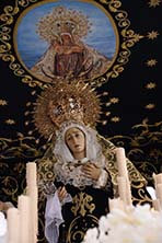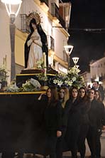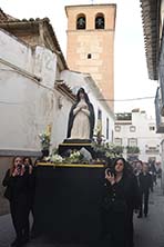 Tras el Sepulcro vendrá después la Virgen de la Caridad, una imagen que no acaba de encontrar su acomodo y que esta ocasión iba portada en unas andas que dejaban caer sobre sus hombros en torno a una docena de mujeres, algunas de ellas muy jóvenes, quienes portaban a esta imagen con la misma seriedad que caracteriza al conjunto de esta estación de penitencia, desde ya antes de su salida y hasta que el cortejo finaliza. |