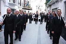 Se trata también de una procesión que hasta ahora ha tenido siempre un alto componente de municipalidad, lo que hace que asista a ella la Corporación, bajo mazas, aunque resentida de algunas ausencias, entre las que las hay por principios propios, acompañando al Alcalde bastetano los máximos representantes de las Policías Local y Nacional en nuestra ciudad. Cierra el cortejo un grupo de siete músicos de la Banda Municipal, en la forma en que ya suele ser habitual en los últimos años. |