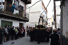 La tarde del Viernes Santo sacó a las calles de Baza la procesión con el Santo Entierro y la Virgen de la Caridad. La procesión del Santo Entierro es la única que se realiza en nuestra ciudad que tiene como titular a una Agrupación Parroquial, la de Ntra. Sra. de la Merced, Santo Sepulcro y María Stma. de la Caridad, que pasados los años sigue a la espera de su reconocimiento oficial como cofradía, un nombramiento que depende del obispado de Guadix-Baza y que sigue sin llegar, aún después de varios años de que esta agrupación se pusiera en marcha. |