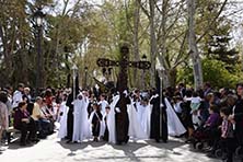 | Los nazarenos portando cruces o cirios dan un carácter especial a esta procesión en la que se transmite ese carácter de Viernes Santo, de penitencia y de oración, ante un público que acude a lo largo de su recorrido impregnado de ese carácter y que contempla el paso del cortejo en silencio y con respeto, mientras este realiza su itinerario acostumbrado, ofreciendo la contemplación de una ordenada comitiva que mantiene su propio sello de principio a fin y que demuestra la calidad de su organización y el trabajo realizado. | ||||