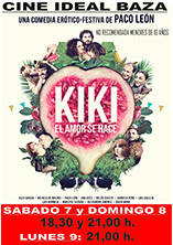 El Salón Ideal estrena este fin de semana la última película del polifacético Paco León: Kiki, el amor se hace. Una película no recomendada para menores de 16 años, que se podrá ver mañana sábado y el domingo día 8, en doble sesión, a las 18,30 y 21,00 horas, así como el próximo lunes, en sesión única a las 21,00 horas. |