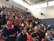 El Baza tenía a su favor el factor cancha y se notó de principio a fin, no parando su afición ni un solo instante de animar a su equipo, que comenzó atenazado, dejando al iniciativa al equipo de Víctor Ortega que llego al final del primer cuarto con una minina ventaja 21-22. Aunque en el segundo cuarto el equipo local comenzó algo mejor y lograron manejar mejor el partido, al descanso de llego con otra mínima ventaja de La Zubia 31-32 y escaso bagaje de puntos para los dos equipos. En la segunda mitad, mejoría definitiva del Baza, que no había estado acertado y que se fue claramente a por el partido, logrando ponerse por delante y alcanzar una ventaja de 8 puntos. Pero los jugadores visitantes no se dieron por vencidos y acortaron distancia para terminar el tercer cuarto con un tanteo de 51-46, por primera vez favorable a los locales. Al cuarto y definitivo periodo el Baza se fue en el marcador alcanzando una máxima diferencia de 13 puntos. Mariano García protegió a Javi Mesa, que tenía 4 faltas, pero que pudo ser utilizado en el tramo final y crucial del partido. Aunque La Zubia lo intentó, en los últimos 4 minutos el Meridiano supo jugar con tranquilidad y con el marcador favorable, sabiendo contrarrestar el intento desesperado de los visitantes por acortar distancias a base de triples. Las estadísticas reflejan que Javi Mesa, con una valoración de 21 y 18 puntos anotados, fue el jugador más valioso para los locales, mientras que Felipe González, con 17 puntos anotados, fue el máximo anotador de su equipo y segundo del partido. Al final del encuentro, alegría desbordada los jugadores y afición local y objetivo conseguido: una plaza para jugar la próxima temporada en liga EBA, que parece ser que esta vez el club bastetano sí que la va a aceptar. CB Meridiano Baza (73) Antonio López 10, Jaime Ivars 7, Javi Mesa 18, Óscar Alonso 9, Sergio Álvarez 5, cinco inicial- Javier Martínez 7, Antonio J. García - , Alberto Moya -, Miguel Milán -, Francisco Sánchez 2, Javier Muñoz 5, J. Carlos Sánchez -, Manu Mesa 10. CB La Zubia (62) Manuel Ezomo 11, Julio Torres -, Machuca 12, Vicente Brox 10, F. González 17, cinco inicial- David García, Hugo Tavío 3, Pablo Lozano -, Abel Campos 5, Alberto Chamorro 1, Antonio Marín 3, J. Antonio Verdugo -, Alex Brox -. Árbitros: González y Parrondo, de Málaga. |
