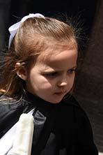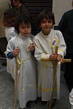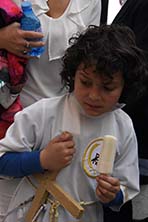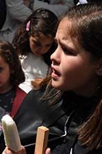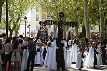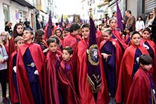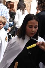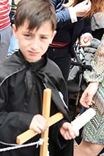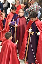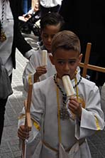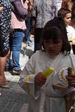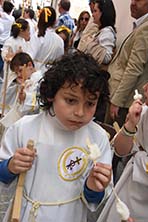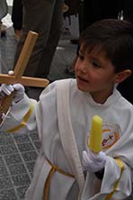Niños y niñas de las diferentes cofradías, junto a los que portaban el hábito propio de la Cofradía del Resucitado, apéndice de la Cofradía de la Soledad y el Cristo de la Misericordia, para formar una procesión con un orden bastante bueno y con una entrega por parte de los más jóvenes cofrades que permite asegurar que el futuro de la Semana Santa bastetana está garantizado con gente así. |