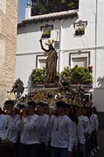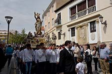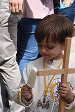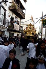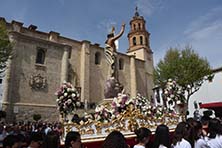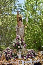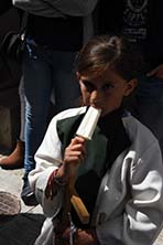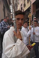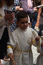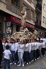 La que es la mejor cantera de la Semana Santa de Baza, los niños y niñas de las diferentes cofradías, llenó de esplendor el Domingo de resurrección. Los niños y niñas de Baza han sido un año más los auténticos protagonistas de la procesión del Cristo Resucitado, quien volvía a ir sobre su coqueto paso a hombros de los niños y niñas bastetanos, quienes componían dos cuadrillas, una con los más mayores y otra con los más jóvenes, para turnarse a lo largo del desfile que caracteriza al Domingo de Resurrección en nuestra ciudad. |